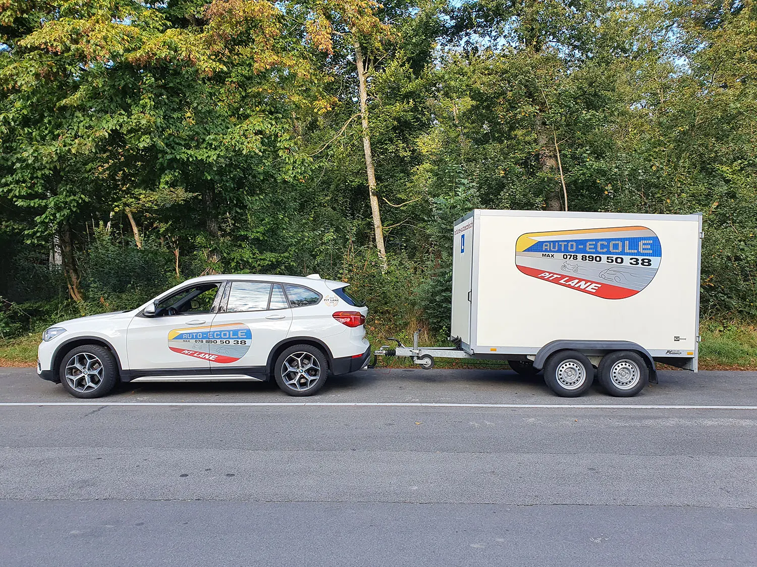 Les cours de remorque se font à bord d’une BMW X1, boîte de vitesses automatique, équipée de doubles commandes pour un apprentissage optimal.
